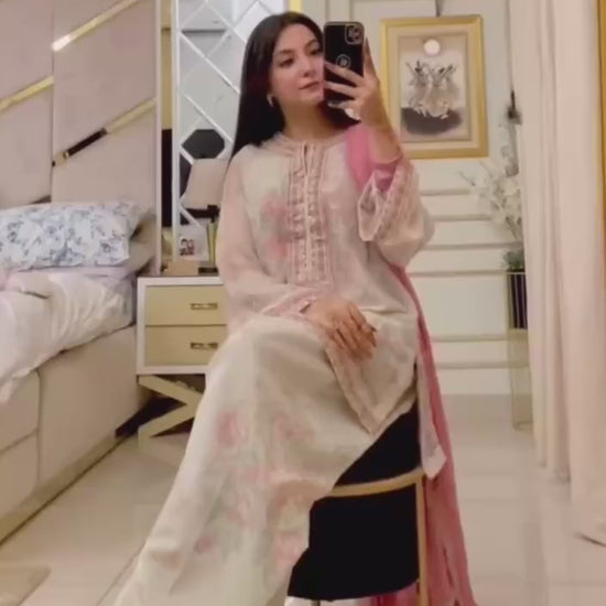 Elevate your party look with this Designer Party Wear set featuring a pure chiffon georgette top adorned with intricate digital print, delicate embroidery, and subtle sequin accents. The top’s comfortable micro cotton lining ensures a perfect fit, available in full-stitched sizes M to XXL. Paired with a stylish farshi palazzo in matching chiffon georgette with elastic waist and canvas patch, this ensemble offers both elegance and ease. Complete your outfit with a soft butterfly net dupatta featuring a refined minimal border, perfect for graceful draping at any festive occasion.